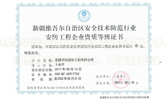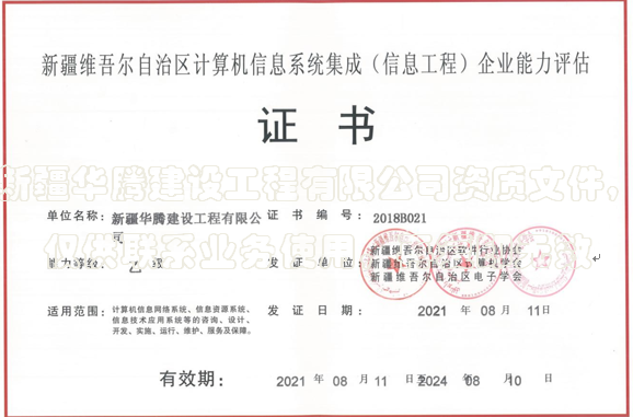 新疆維吾爾自治區(qū)計算機(jī)信息系統(tǒng)集成企業(yè)證書